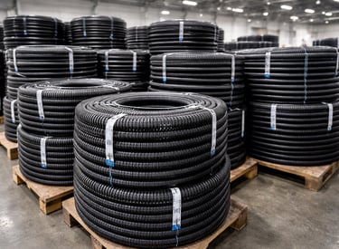 Fabricamos conduítes de PVC preto com alumínio espiral interno, usados em Estádios, Hospitais e Redes de TV.