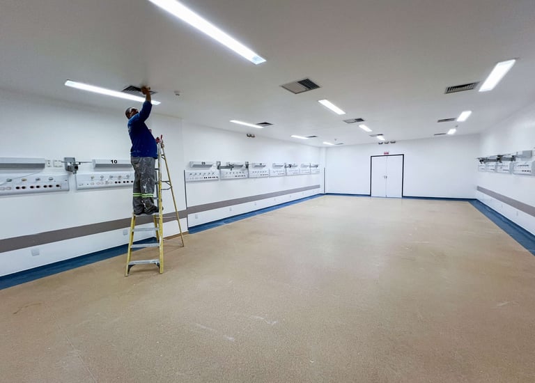 Conduítes resistentes que suportaram a instalação rápida na nossa rede de fast food.